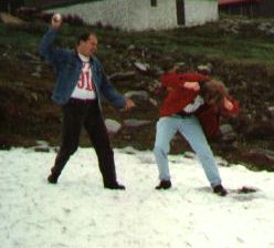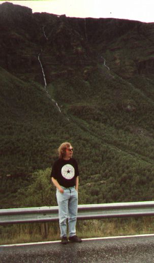 Sommaren -93 släpade jag (Aki) och Rainer med oss Sylle på en bilsemester till Nordkap. Här står Sylle framför ett antal mindre bäckar som rinner nedför en backe någonstans i Norge.